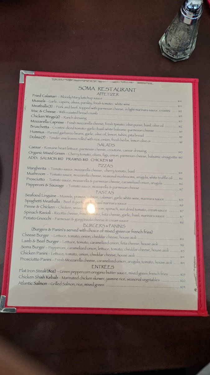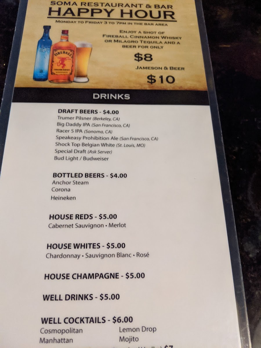 Soma Restaurant & Bar is a laid-back yet stylish spot near Union Square in San Francisco. Known for its Italian-inspired comfort food, it offers a mix of pizzas, pastas, seafood, burgers, and steaks, all served in a warm, inviting atmosphere. Whether you're meeting friends after work or just grabbing a casual dinner, it's a convenient and consistently reliable restaurant with a full bar, solid portions, and a central location perfect for locals and visitors alike.